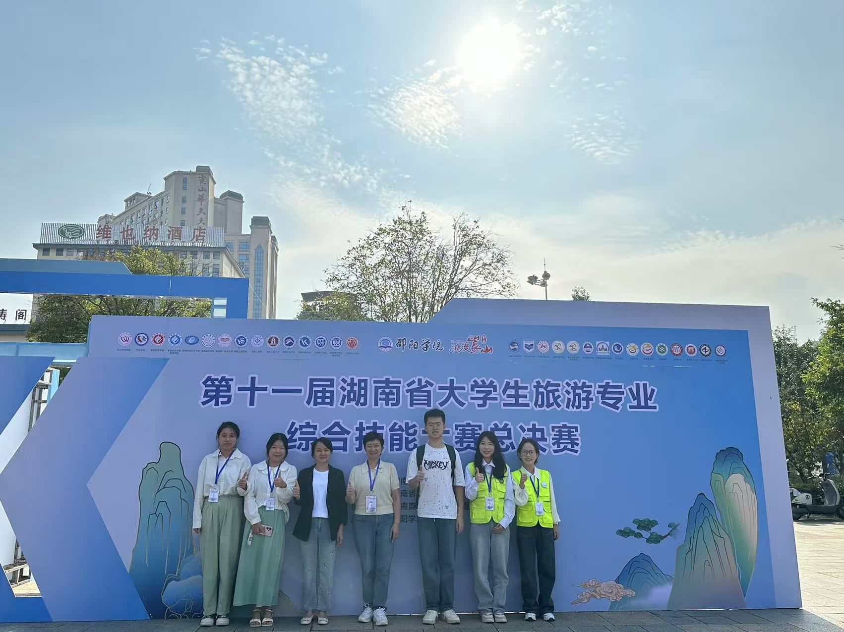 在有省内32所院校,378个团队参赛的省大学生旅游专业综合技能比赛中,2022级酒店管理专业陈杰、蔡柔等同学的作品《纳须弥于学院掌•崀山印象》和2022级酒店管理专业范昕卓、视觉传达设计专业曾文婷等同学的作品《绝不“崀”得虚名》作品(指导老师:龚曦),入围比赛决赛。在67支团队的总决赛现场答辩中,同学们沉着冷静,表现优异,分获文旅产品创新设计赛道一、二等奖。