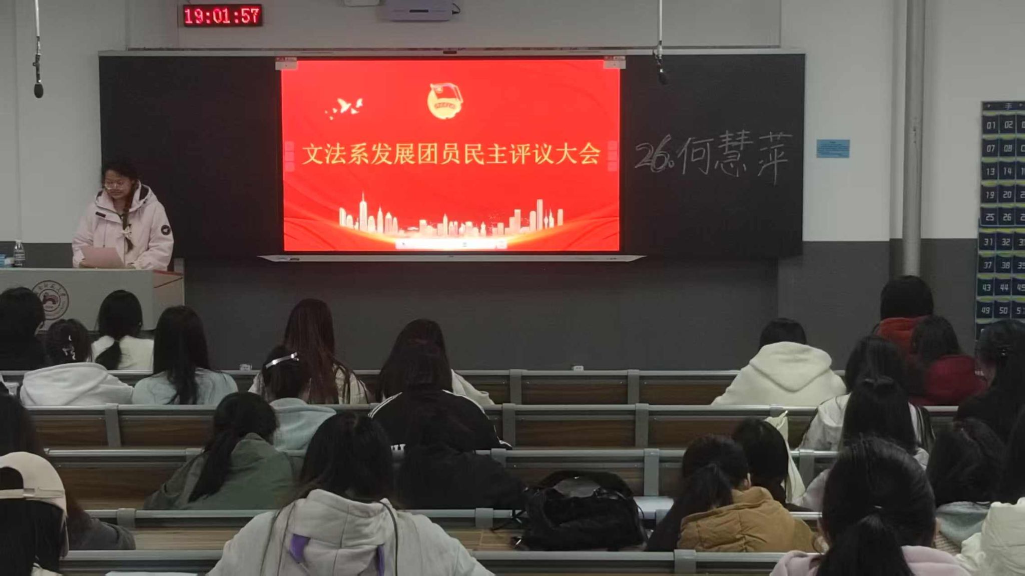 (通讯员 冯思怡 刘婉婷 夏楷)4月1日晚上,我院文法系团学两会在树达楼415教室召开发展团员民主评议会。会议由文法系团总支组织部副部长王俊楠主持。