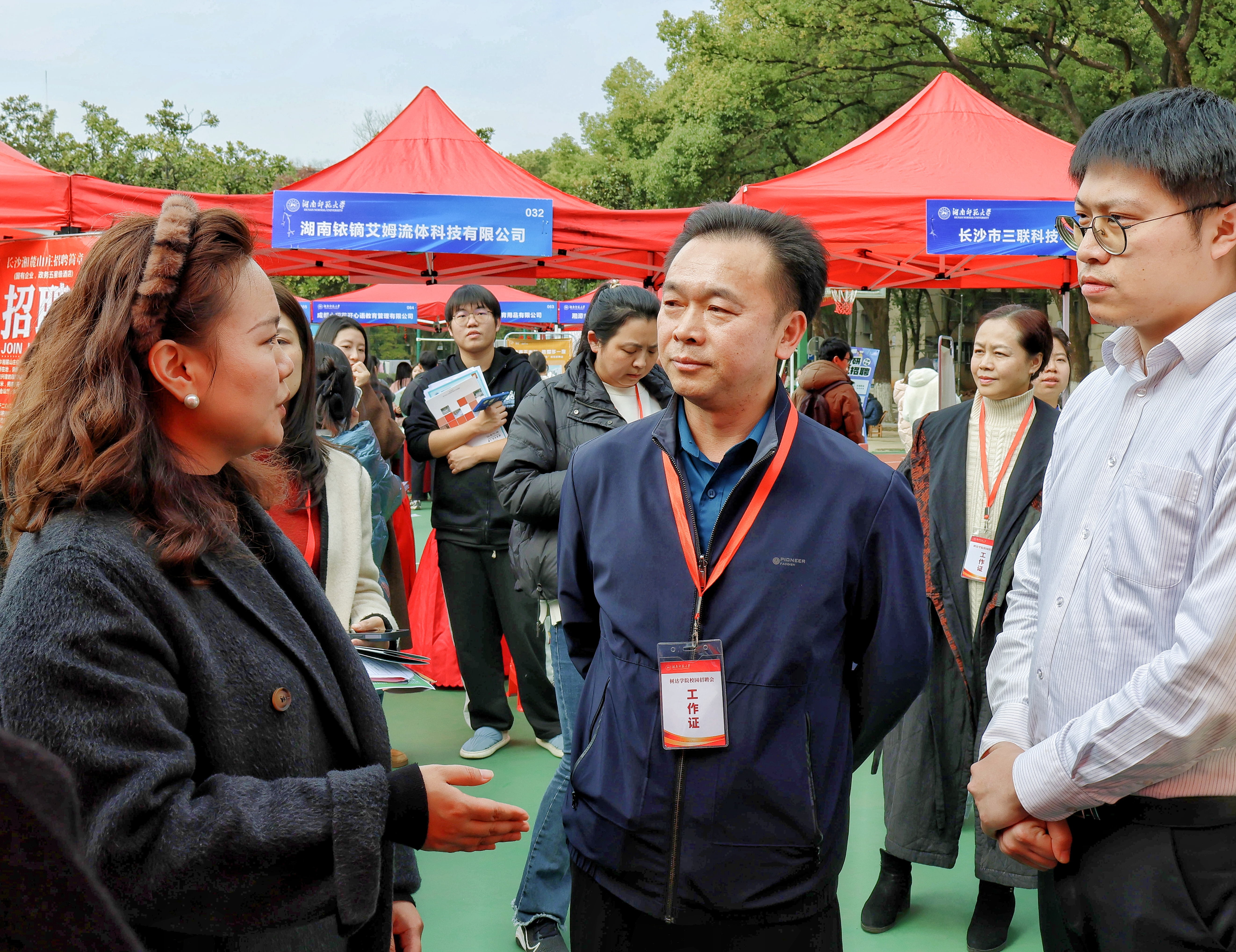 (记者 胡穗源 刘紫琼)2月27日下午,我院在校篮球场举行2025届毕业生春季校园招聘会。院长向坚持、党委书记李正益、党委副书记赵鑫海到现场看望了招聘单位和2025届毕业生。