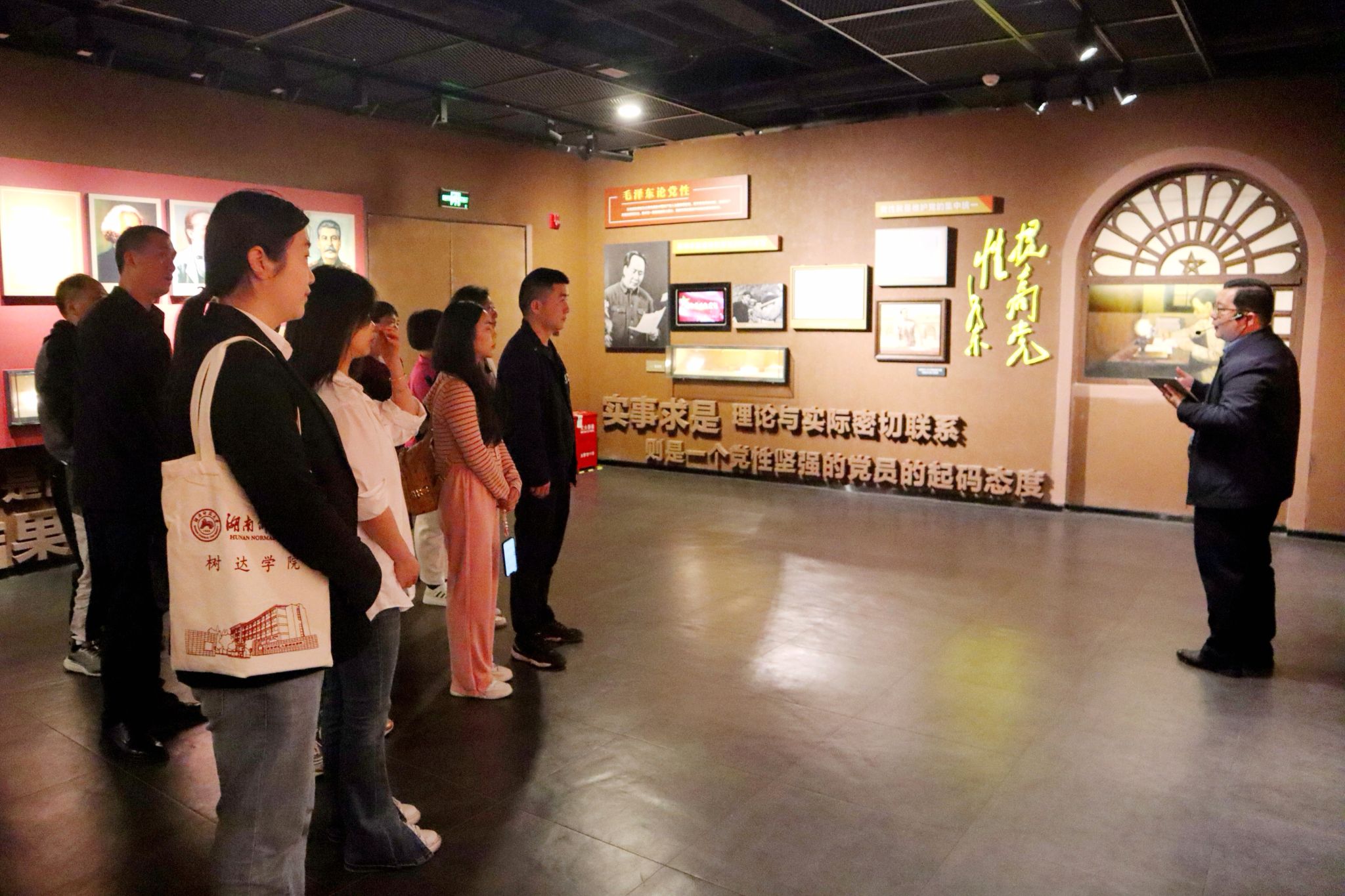 湖南党性教育馆通过大量图片视频资料生动再现了中国共产党人坚持党性、坚定信仰、坚守纪律的精神,全体人员在湖南省委党校党史教研部副教授、省党史学会副秘书长黄建国的带领下,分别围绕掌握党性理论、明确实践要求、学习光辉典范、吸取惨痛教训、传承红色基因5个专题展开参观学习。