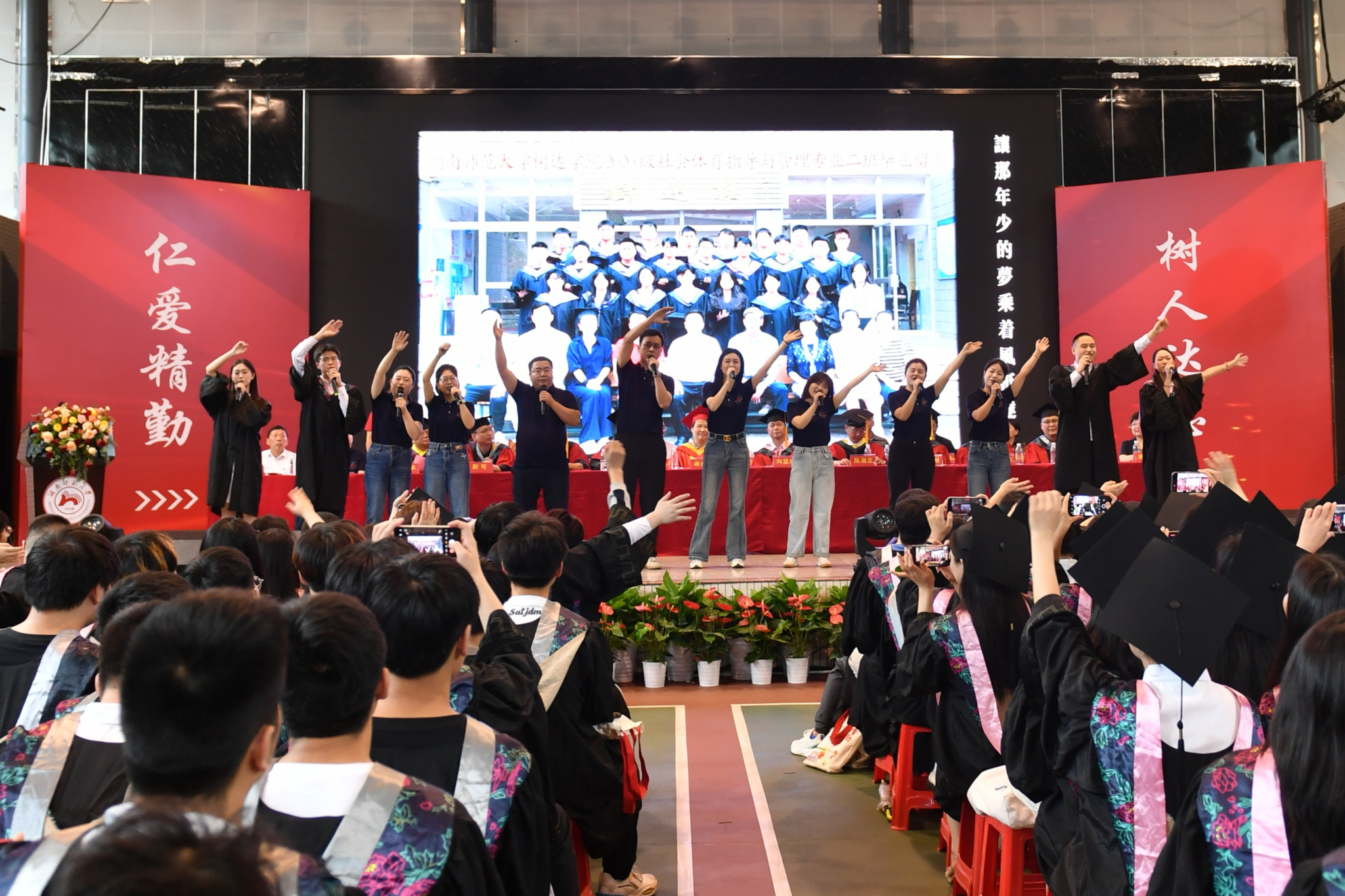 毕业班师生代表合唱歌曲《凤凰花开的路口》和《一路生花》,为2024届毕业生送上真挚的祝福。