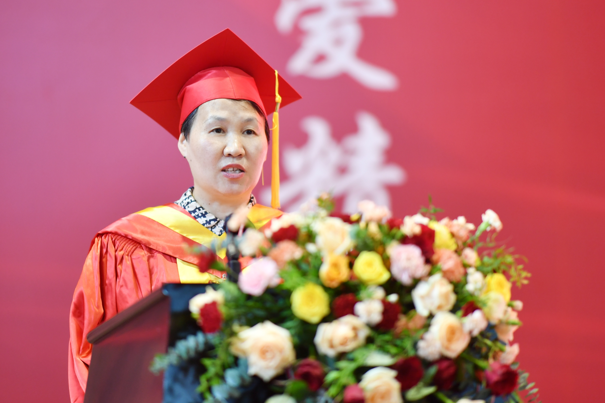 校友代表何玲回顾了自己创业的心路历程、分享了工作成就,并希望毕业生们不忘以“仁爱精勤”的校训要求自己,以实际行动回报母校的培育之恩。
