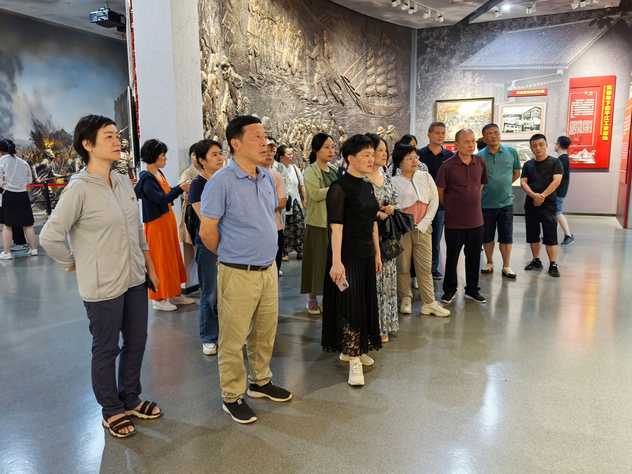 6日,全体教职工党员走进湘鄂赣革命根据地纪念馆,丰富的展示图片、史料和实物生动再现了当时的历史场景,身临其境地感受这片土地的厚重历史和革命精神。随后,大家来到了平江起义纪念馆,映入眼帘的是玻璃橱窗里陈列着起义将士们用过的物品和展墙上斑驳的照片,真实地再现平江起义等重大历史事件,让全体教职工深刻体会革命先烈报效祖国的爱国情怀和英勇顽强的战斗精神。