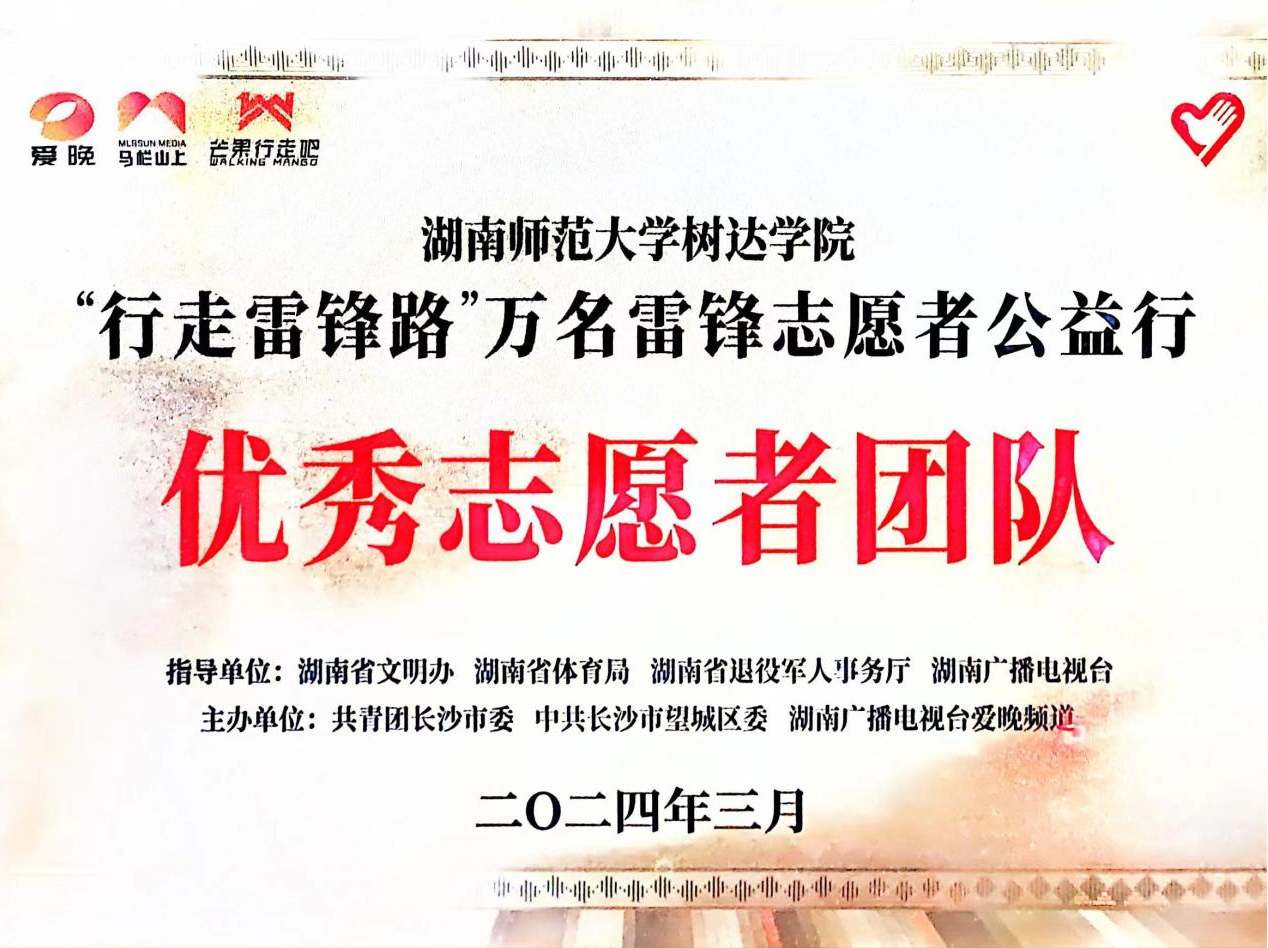 行走雷锋路。共话雷锋情。星辰文化艺术社始终秉承着热心公益,无私奉献的志愿服务理念,在此次活动中荣获"‘行走雷锋路’万名雷锋志愿者公益行”优秀志愿者团队称号。