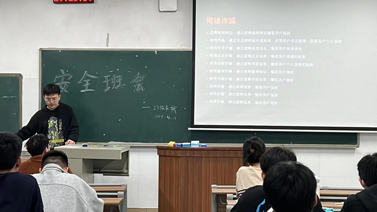 (记者 郑伊婷 胡鑫辉 刘艺杰)4月11日晚,我院理工系2022级机械设计制造及其自动化专业在树达楼109教室开展以“铸就防骗长城,擦亮识骗慧眼”为主题的班会。会议由安全委员刘伟主持。