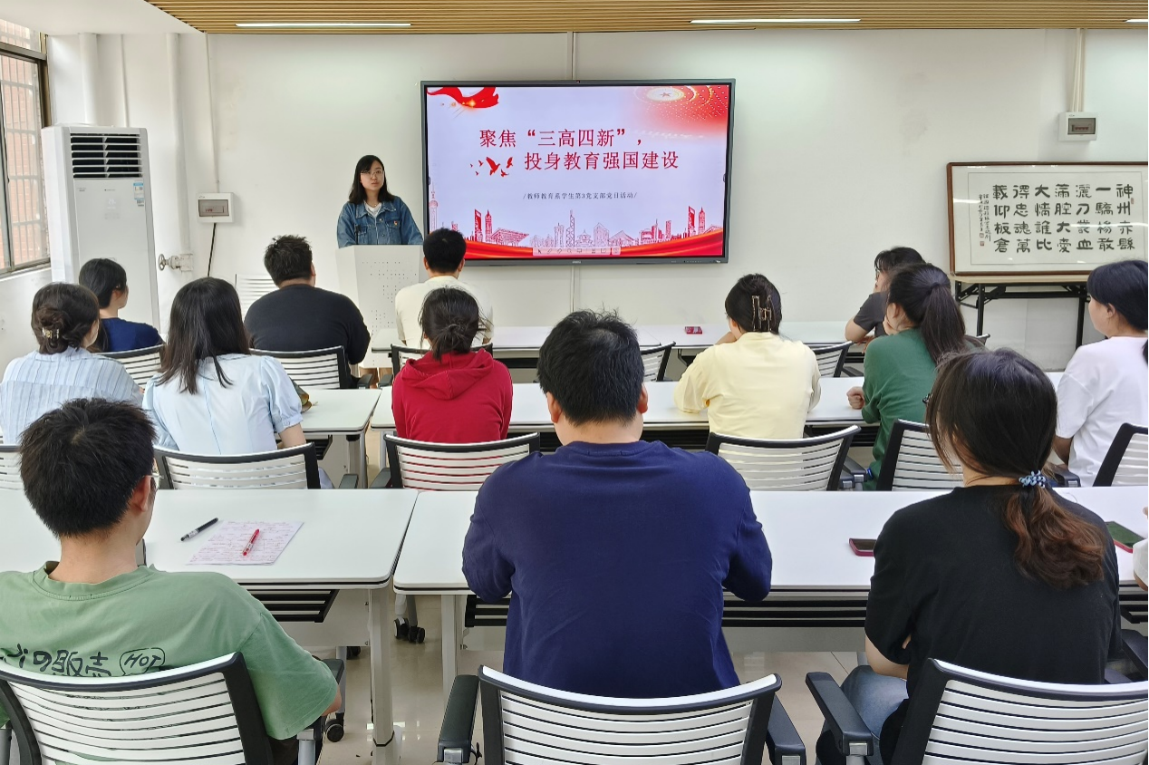 (记者 雷玉婷 唐念祖 常雅欣)4月15日中午,我院ok138cn太阳集团学生第三党支部在党员之家开展以“聚焦‘三高四新’,投身教育强国建设”为主题的党日活动。ok138cn太阳集团学生第三党支部第一书记孙一心出席活动,活动由ok138cn太阳集团学生第三党支部预备党员唐杰主持。