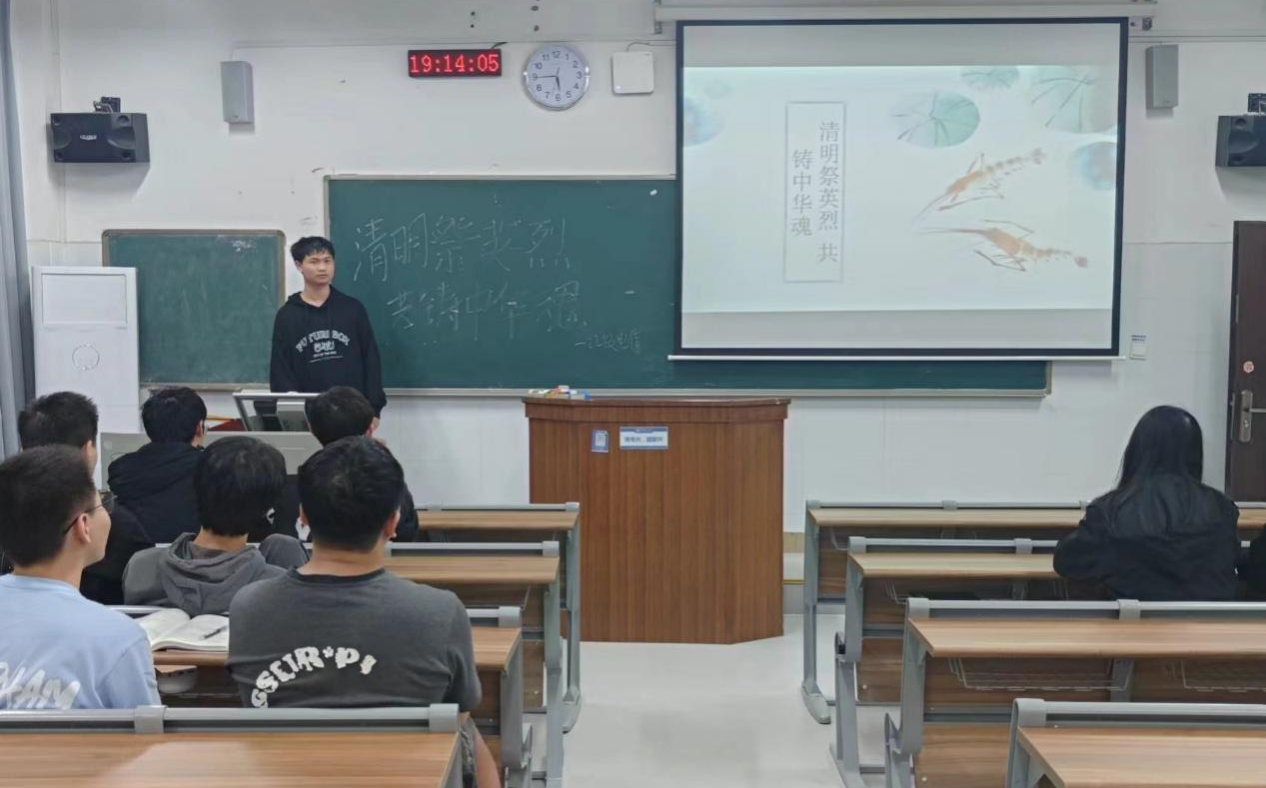 (记者 叶俊杰 胡洋 王俊峰)4月17日晚,我院理工系2022级电子信息科学与技术专业在树达楼108教室开展以“清明祭英烈,共铸中华魂”为主题的团日活动。活动由2022级电子信息科学与技术专业组织委员胡洋主持。