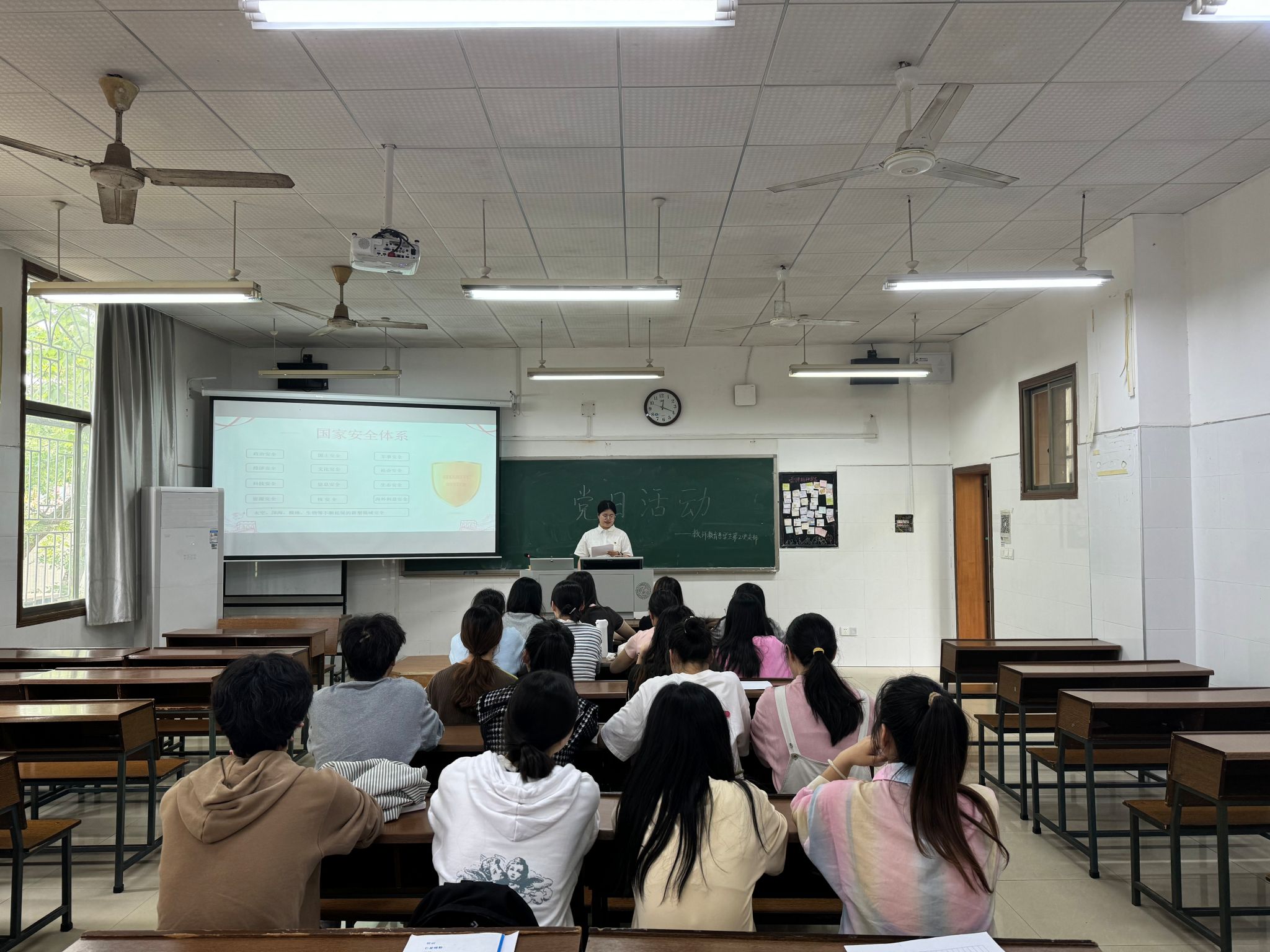 陈晶玲从国家安全的基本内涵及当前国际国内形势引出主题。她表示,国家安全是指国家政权、主权、统一和领土完整、人民福祉、经济社会可持续发展和国家其他重大利益相对处于没有危险和不受内外威胁的状态,是一种保障持续安全状态的能力。她强调,没有国家的繁荣发展,就没有个人的幸福美满,各位党员同志要始终坚定不移地用总体国家安全观统一思想,统一行动,自觉承担维护国家安全的责任与义务。