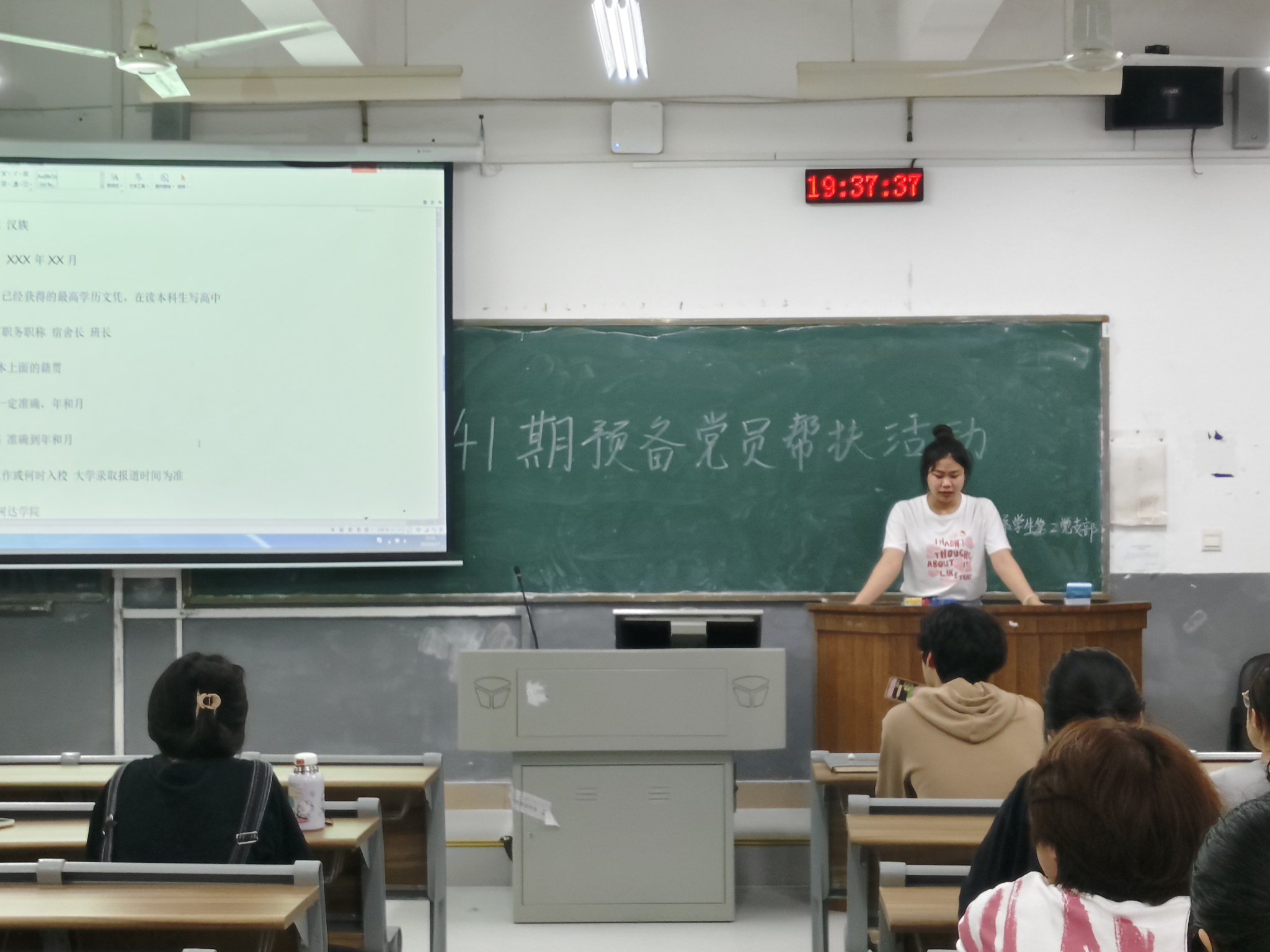 预备党员曾鑫作总结发言。他表示,本次帮扶活动旨在帮助入党积极分子解决思想问题和材料填写问题,各预备党员应当充分发挥模范带头作用,树立良好的个人形象,为入党积极分子指引方向。