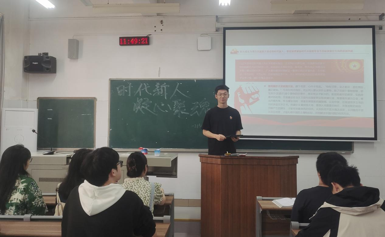 (记者 杨峥 刘艺杰)5月13日中午,我院理工系2021级电子信息科学与技术专业在树达楼109教室开展以“时代新人,凝心铸魂”为主题的团日活动。活动由2021级电子信息科学与技术团支部书记唐祺主持。