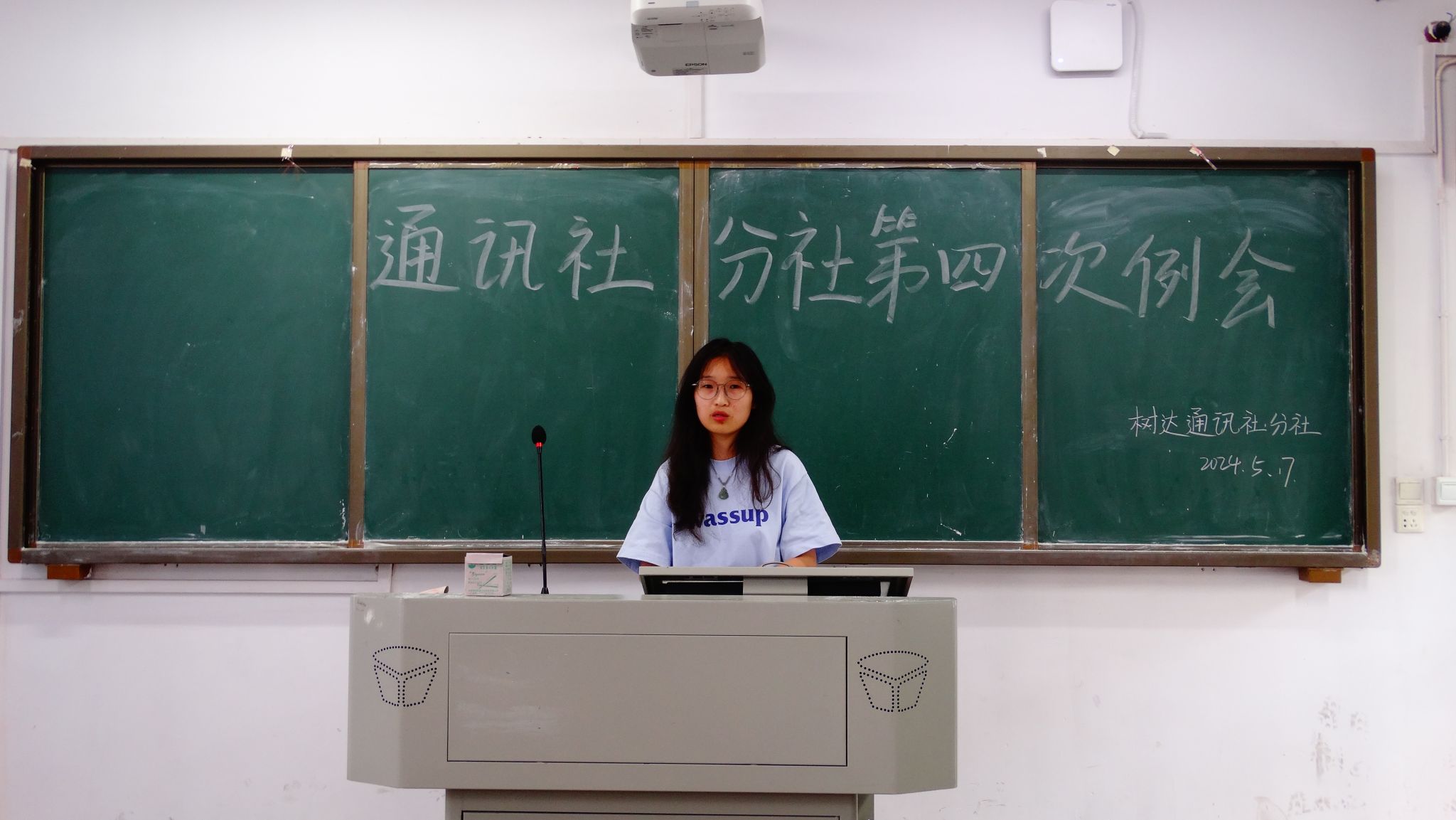 (记者 舒欢 边静玢)5月17日中午,我院树达通讯社张公岭分社在教学楼102教室召开本学期第四次例会。会议由分社办公室干事黄丽主持。