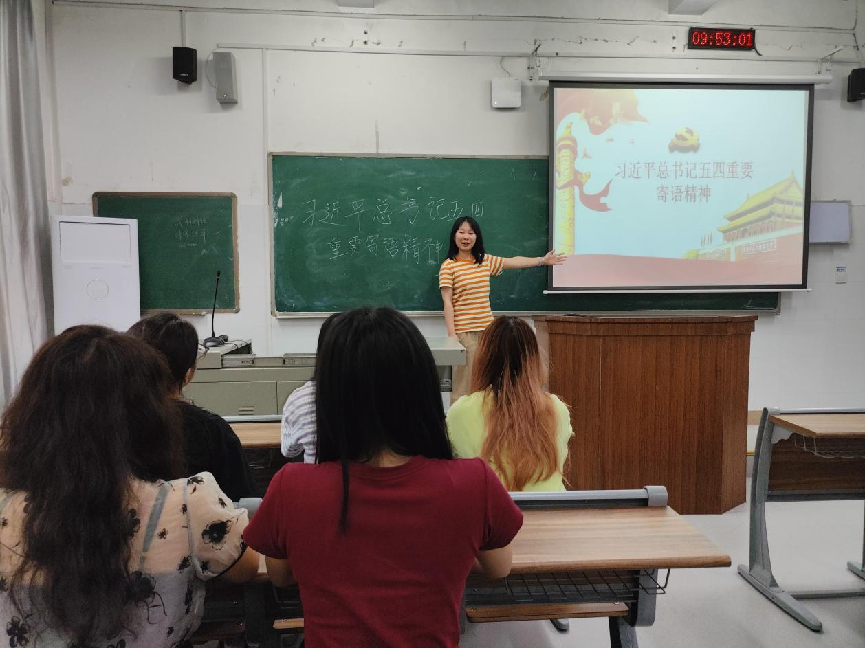 甘晓带领团员们解读了习近平总书记有关五四精神的重要寄语。她表示,全体团员要牢记团员身份,将习近平总书记重要讲话精神落到实处,坚定理想信念,勤奋学习,在推进强国建设、民族复兴的伟业中书写壮丽篇章。