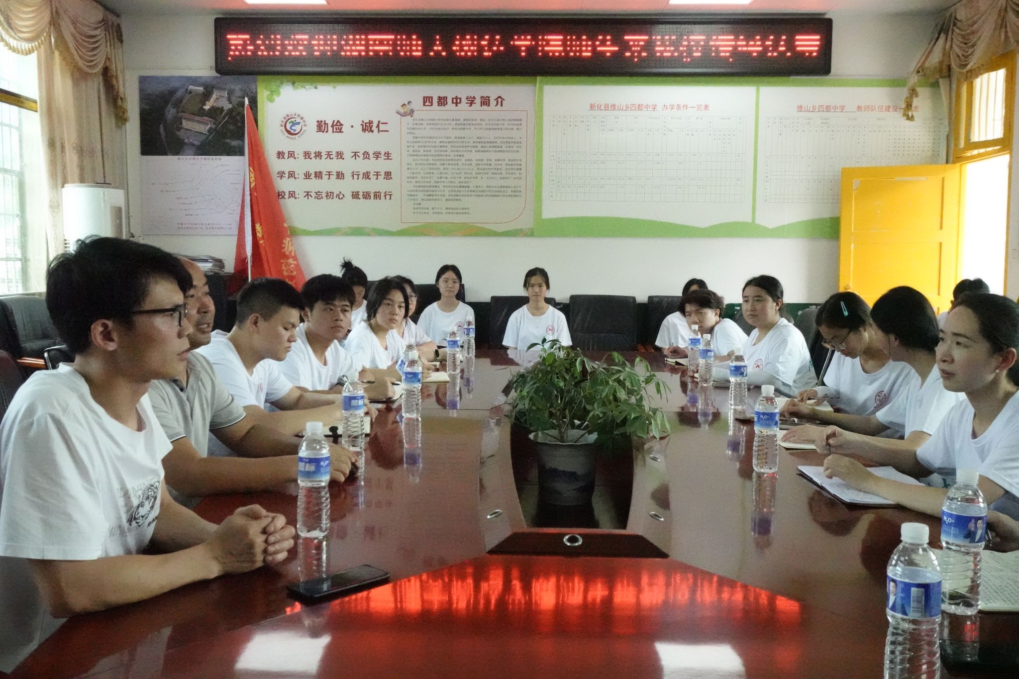 (记者 邹韵霖 蒋婷婷 刘艺杰)7月5日下午,我院经管系、理工系三下乡“青树行”暑期社会实践团在维山乡四都中学召开见面座谈会。四都中学校长吴红峰、专职副书记聂啸、总务主任曹跃云、政教主任刘跃霞、实践团指导老师王贞出席此次会议。