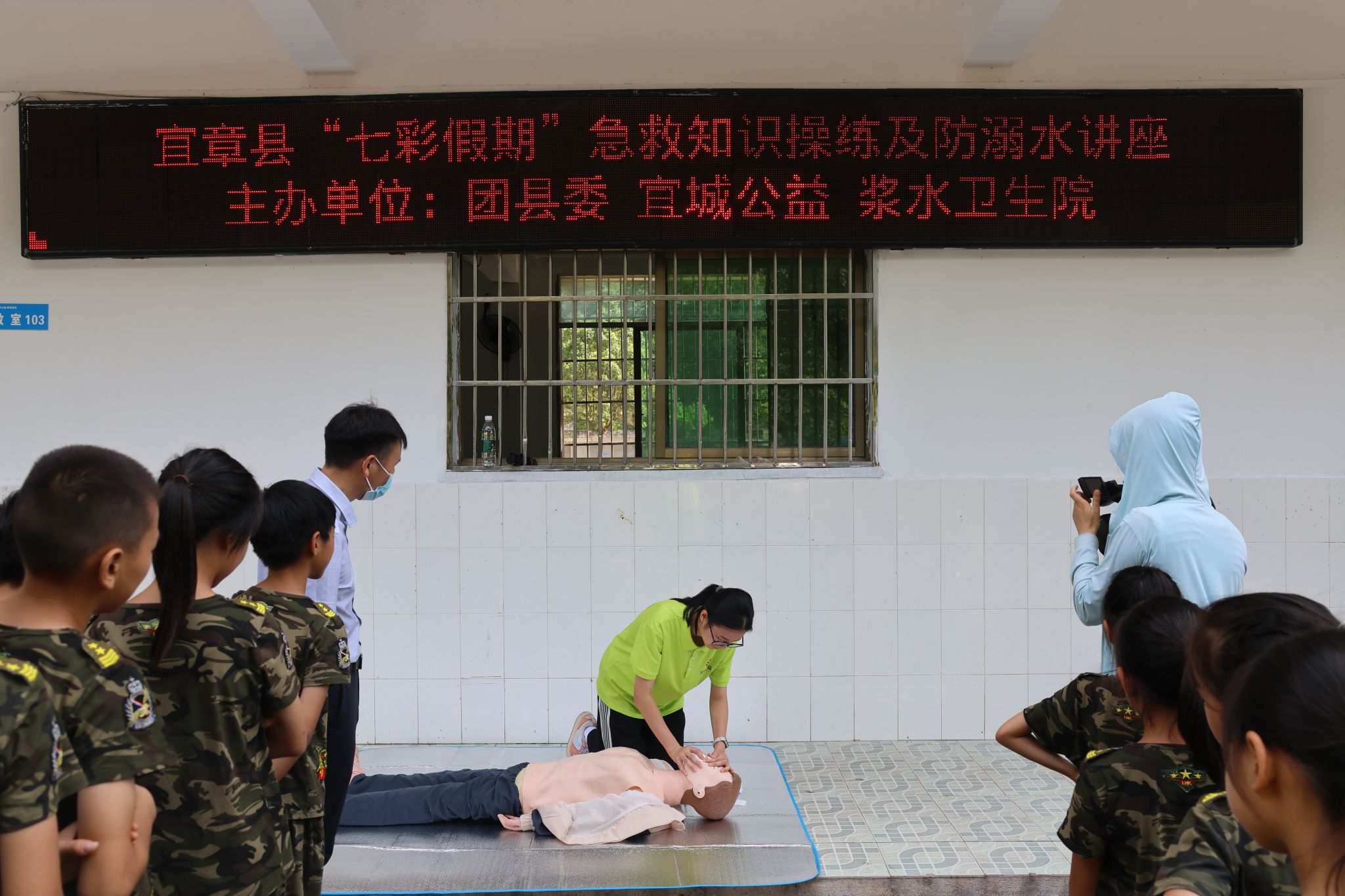 (记者 李欣润 文思宇 刘睿宁)7月17日上午,宜章县共青团委携手宜章县浆水乡卫生院、领航教育、宜城公益以及树达学院艺体系“湘约未来”暑期社会实践团在宜章县浆水乡宜城公益青少年成长基地共同开展急救与防溺水知识宣传活动。