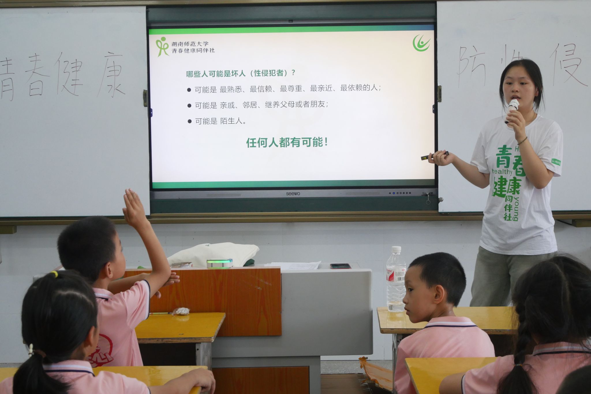 袁婷组织学生填写了性教育知识调查问卷,深入了解了学生对性教育的认识、态度,并详细解读了性侵害的定义、易发生性侵害时间、易发生性侵害场所以及可能的侵害者,让学生们明确了性侵害的界限。