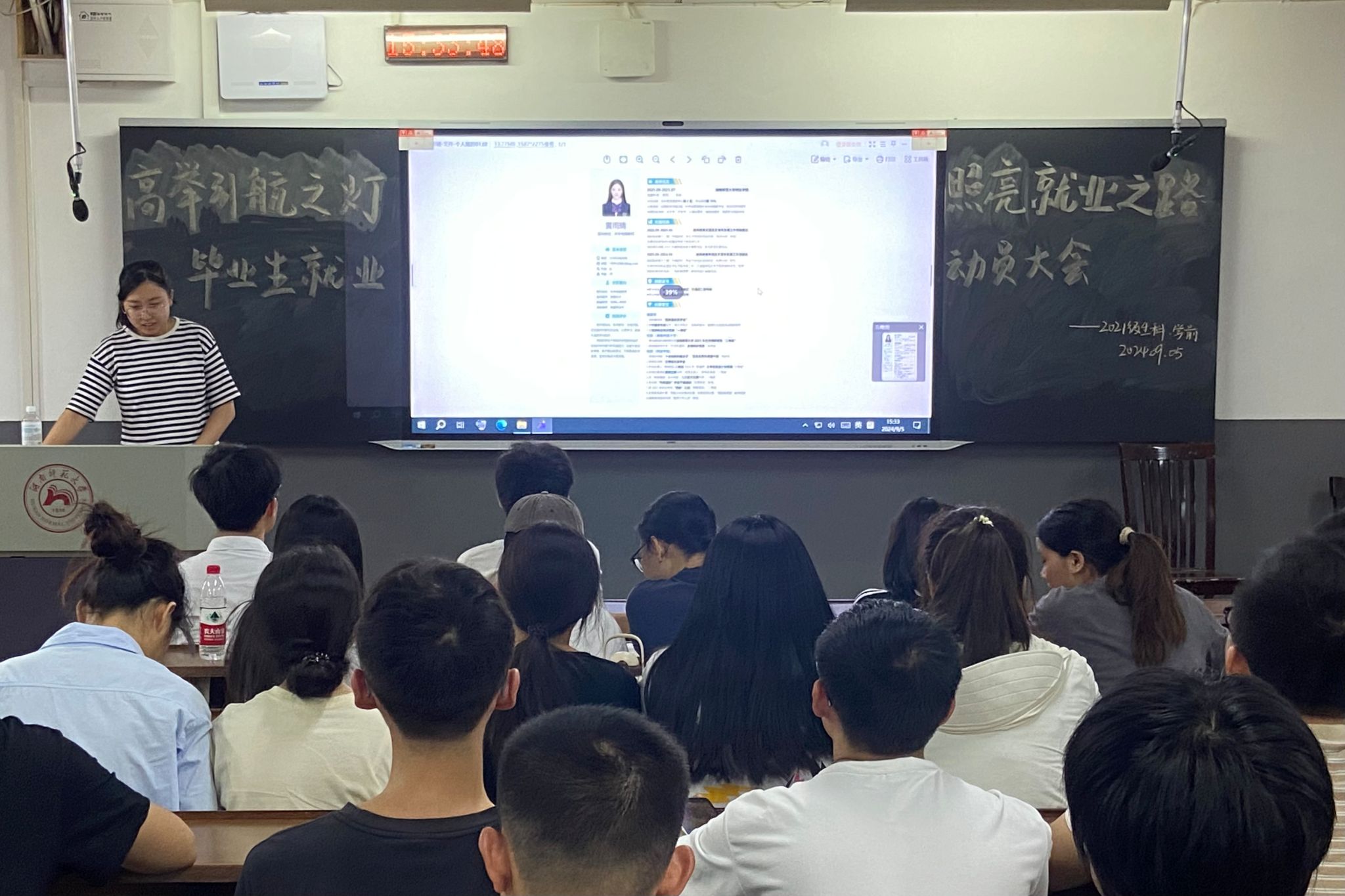 孙一心就校外实习和就业安排作了两点强调,一是注意仪容仪表、遵守校规校纪,严格落实请假手续,遵守住宿规定;二是谨防电信诈骗。她分析了当前的就业形势,并从如何正确撰写简历以及就业求职相关事项对学生们进行了就业指导。她希望同学们能不畏困难,向前迈进,树立正确的择业观和就业观,明确就业方向,把握每一个就业机会。