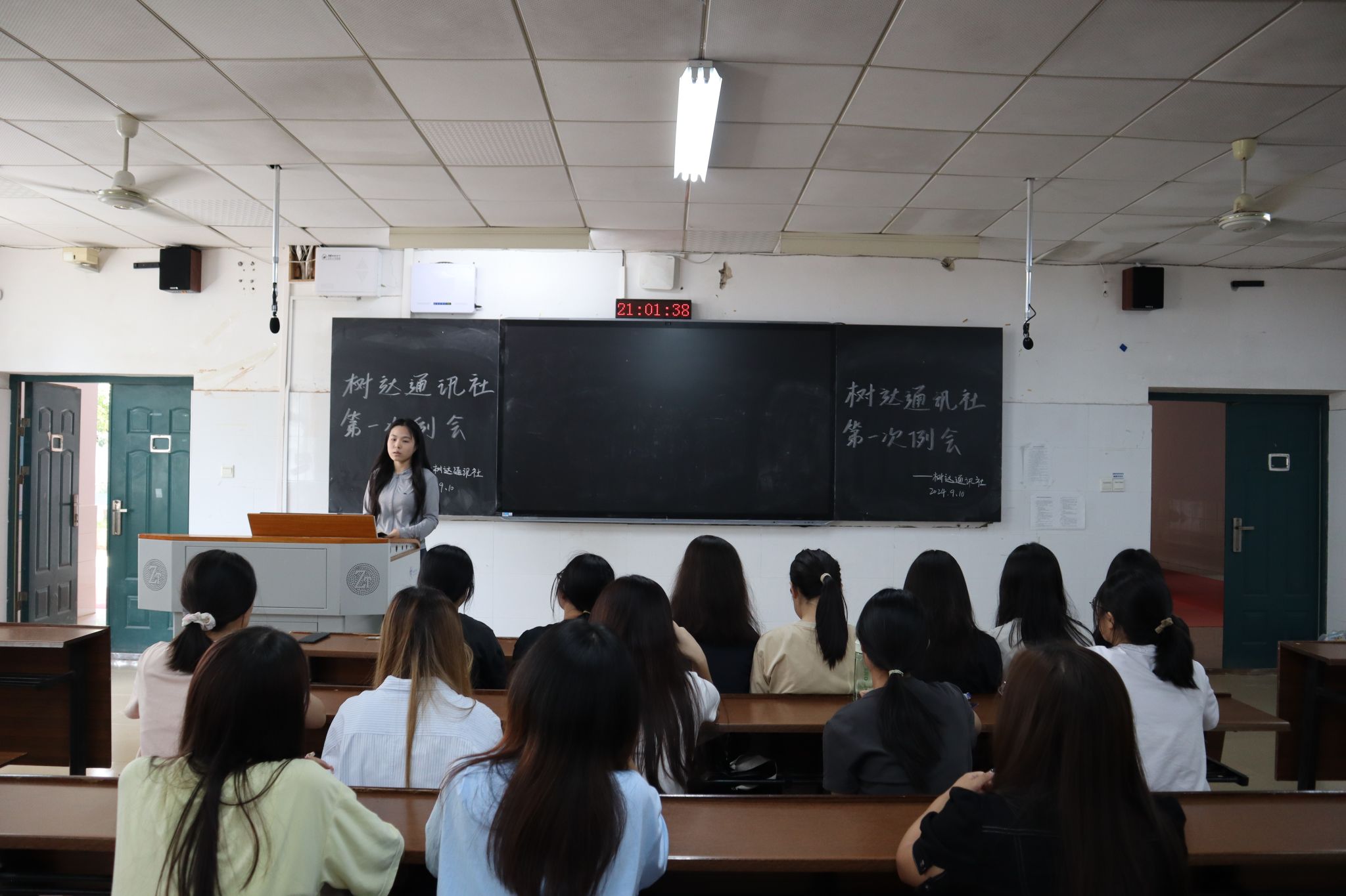 树达通讯社社长邹韵霖作会议总结。她对新加入的各位成员表示欢迎,并简要介绍了指导老师,强调了例会秩序与评奖评优规则。她表示,树达通讯社是一个氛围良好的学生机构,也是机会众多的发展平台,希望各部门成员能认真对待日后工作,积极响应部长的安排,保持良好的心态,积极参与社内活动,成为更优秀的自己,为通讯社的未来献一份力。