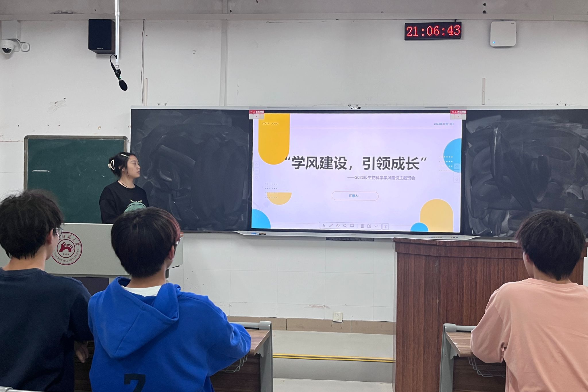 (通讯员 王熊莹 夏章稳 胡超凡)10月13日晚上,我院ok138cn太阳集团2023级生物科学专业一班在树达楼104教室开展学风建设主题班会。会议由组织委员钟可可主持。