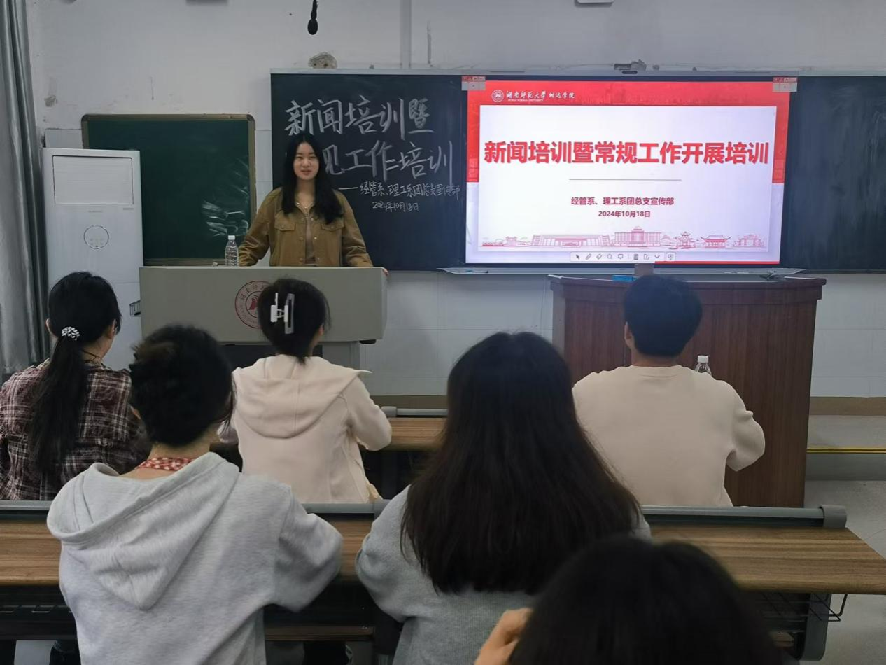 (通讯员 刘媛媛 叶俊杰 刘艺杰)10月18日中午,我院经管系、理工系团学两会在树达楼103教室召开本学期第一次新闻培训暨常规工作培训会。会议由宣传部部长刘艺杰主持。
