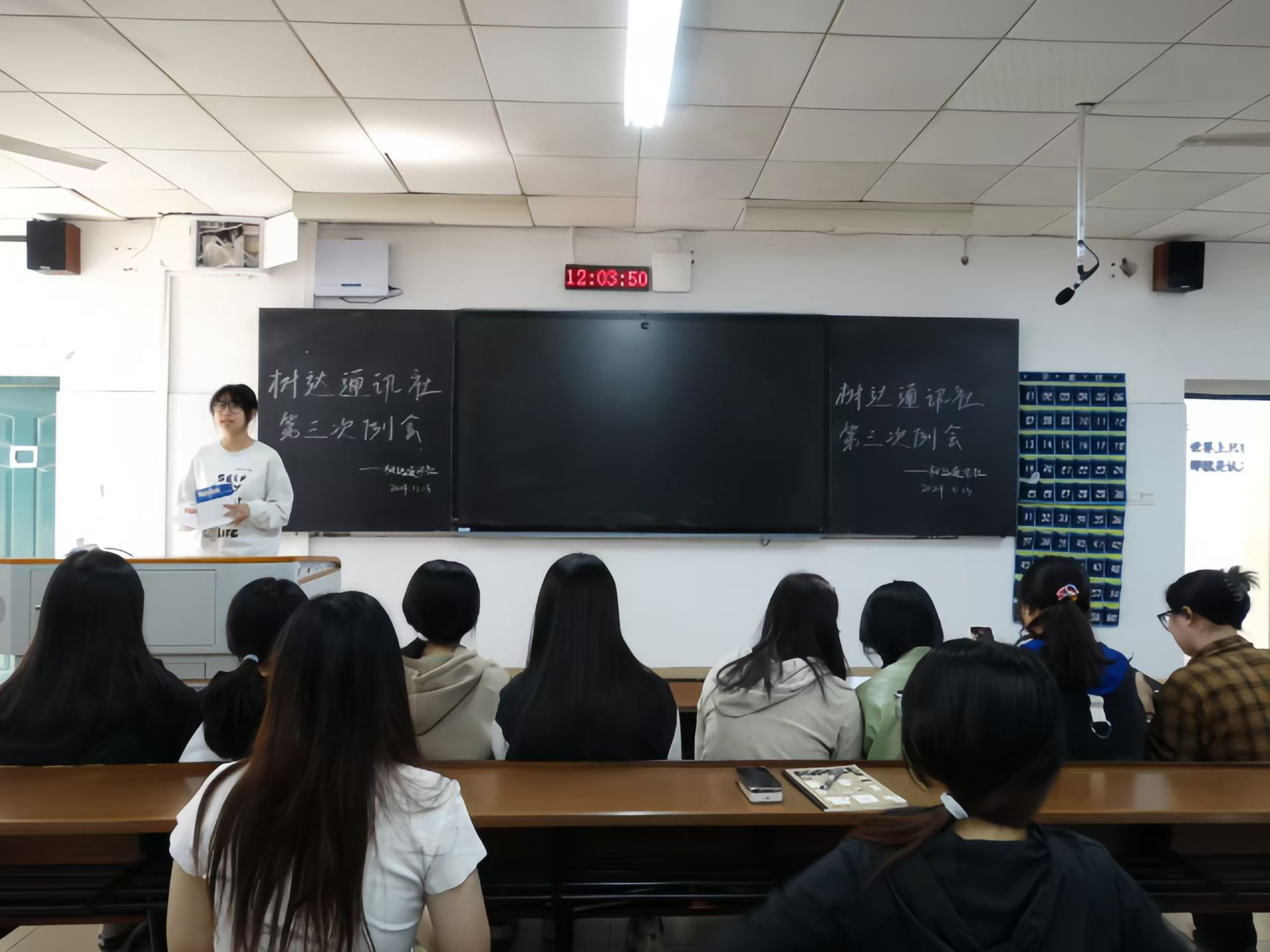 (记者 舒欢 缪雨)11月13日中午,我院树达通讯社在树达楼107教室召开本学期第三次例会。会议由树达通讯社办公室副主任谢翠主持。