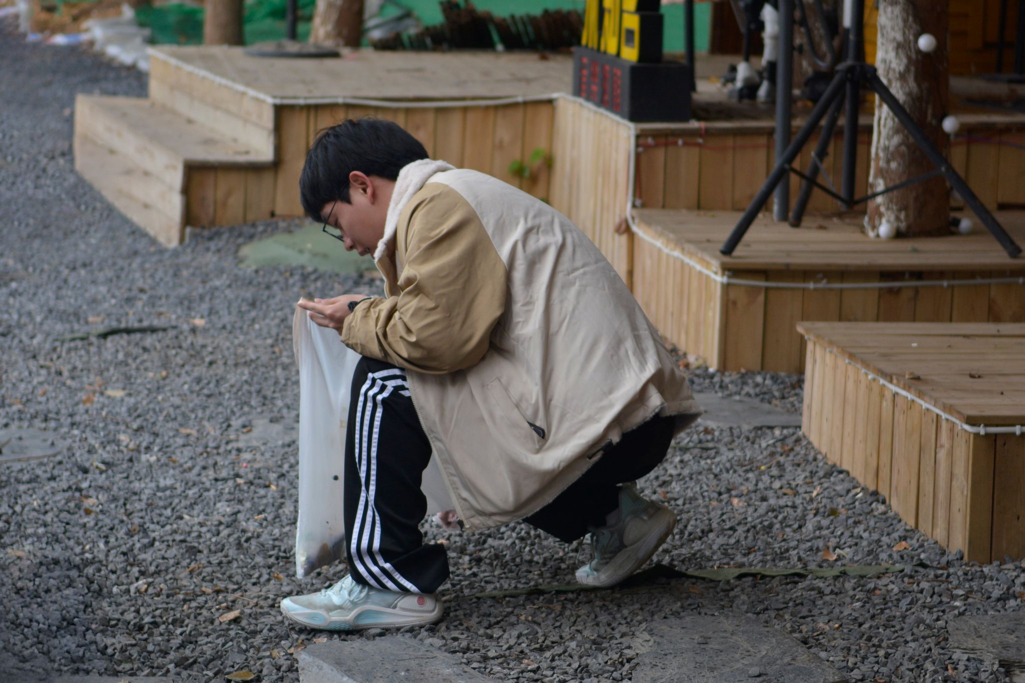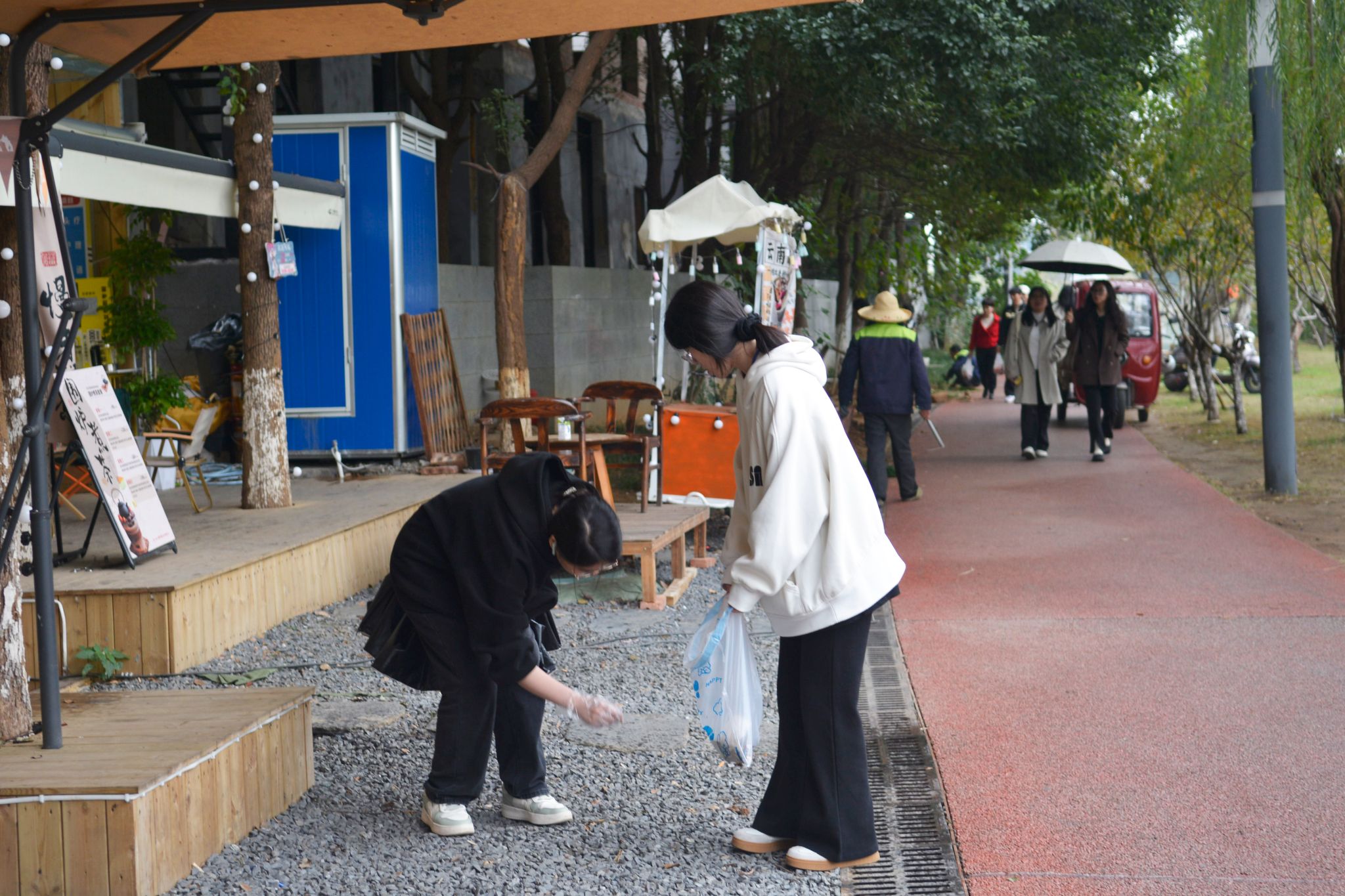 志愿者们以小组为单位,对后湖周边杂草枯枝和垃圾进行清扫,并引导游客养成在公共场所不乱扔垃圾的好习惯,为游客提供了更加整洁、舒适的环境。