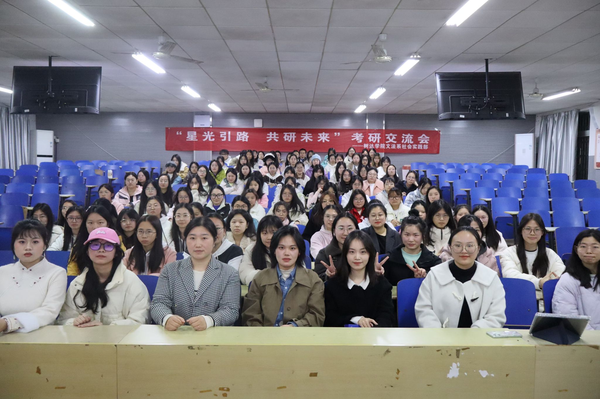 (通讯员 冯思怡 刘婉婷 康世强)11月28日晚,文法系社会实践部在树达楼115教室开展以“星光引路,共研未来”为主题的考研交流活动。文法系团总支书记兼文法系学生第二党支部第一书记彭娇出席活动。2019级法学专业李晨、2019级英语教育专业袁彩凤、2019级汉语言文学专业易紫琳作为嘉宾出席。活动由文法系社会实践部部长罗露芬主持。