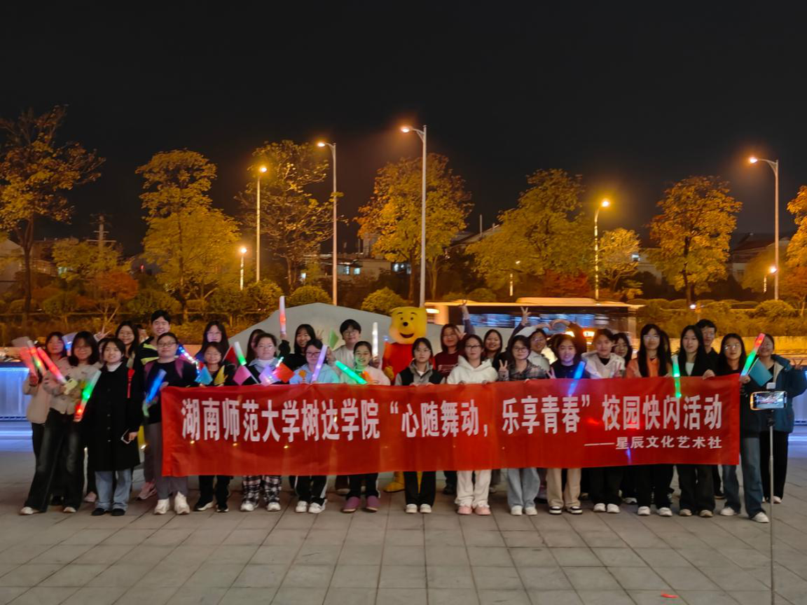 (通讯员 谢先璇 钱丽洁 何慧萍)12月2日,我院星辰文化艺术社在桃花坪校区开展以“心随舞动,乐享青春”为主题的校园快闪活动。活动由星辰文化艺术社团支书向晶负责。