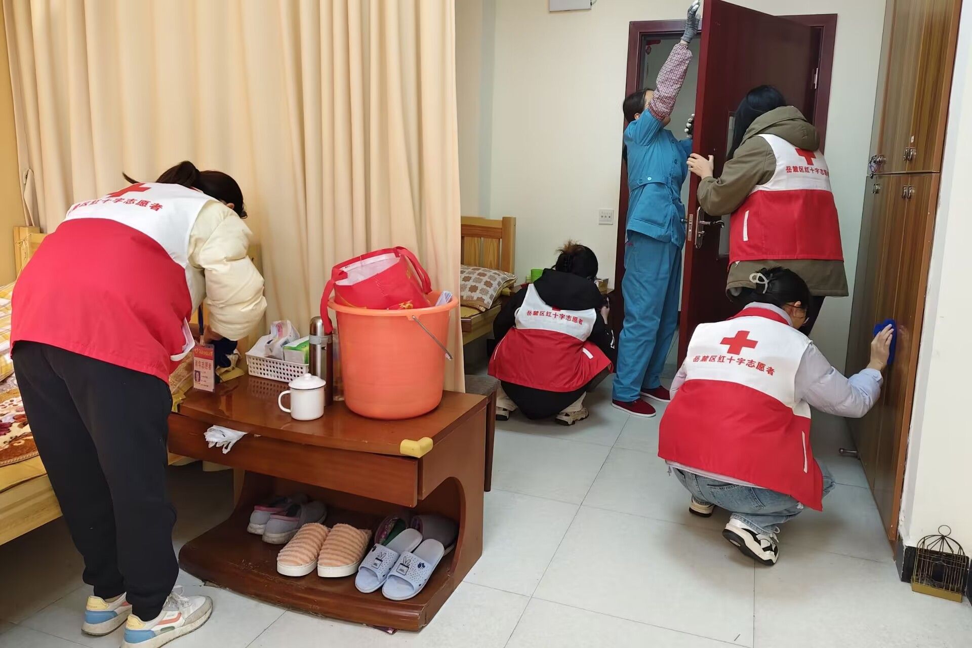志愿者们分工协作,互相配合。室内的志愿者负责擦拭窗户和家具、扫地、拖地、整理床铺和衣物;室外的志愿者们负责清理落叶、捡拾垃圾、清扫步道和检查敬老院的户外设施。