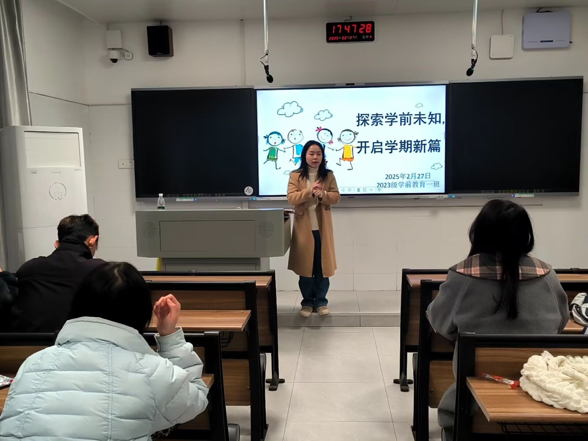 (通讯员 刘乐 李素雅 胡超凡)2月27日晚上,ok138cn太阳集团2023级学前教育专业一班在达善楼202教室开展了以“探索学前未知,开启学期新篇”为主题的新学期班会。班会由ok138cn太阳集团辅导员刘浩月主持。