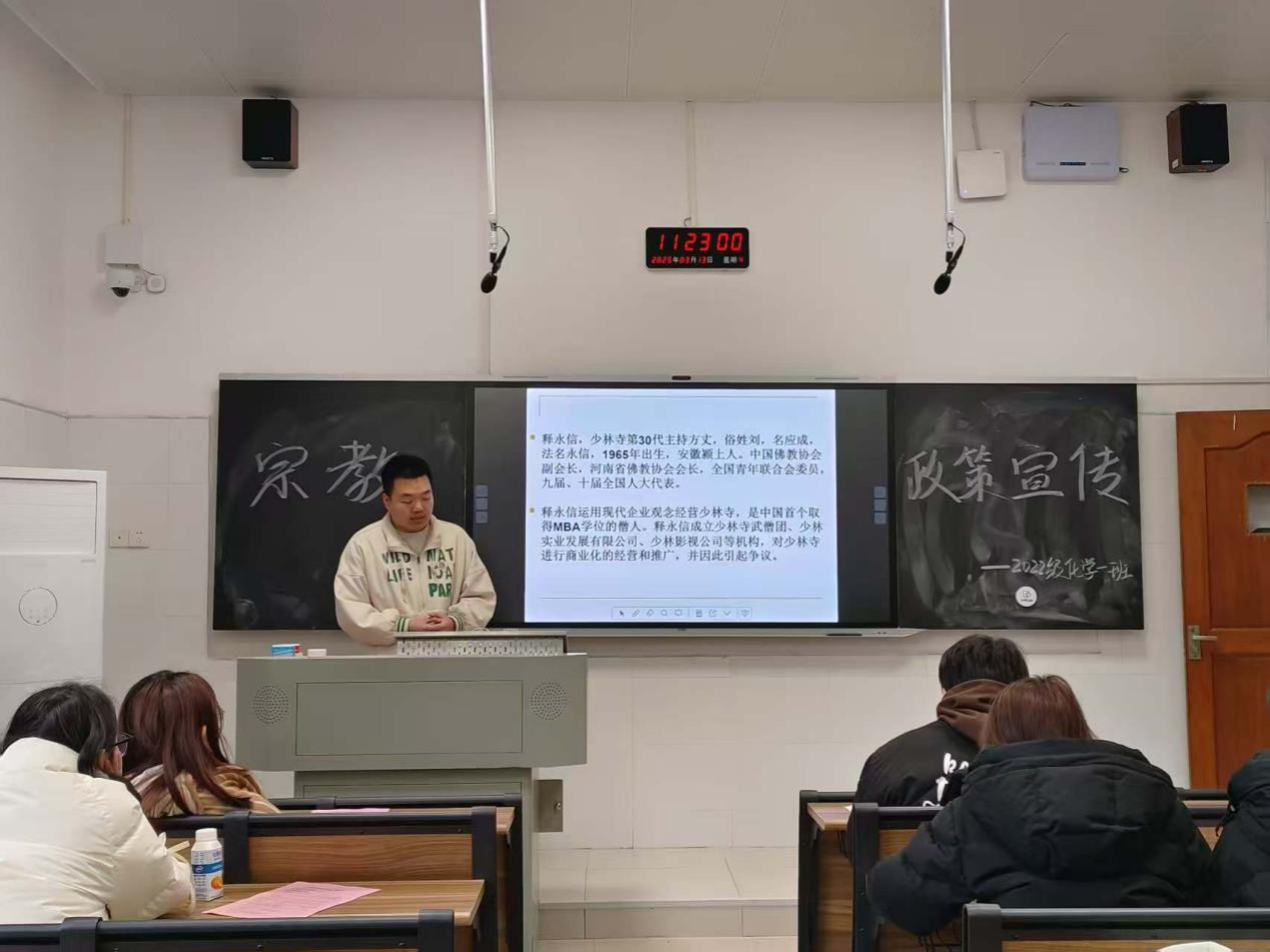 (通讯员 李皖湘 彭璟怡)3月13日至3月25日,我院ok138cn太阳集团2022级、2023级各专业在达善楼召开宗教政策宣传主题班会。