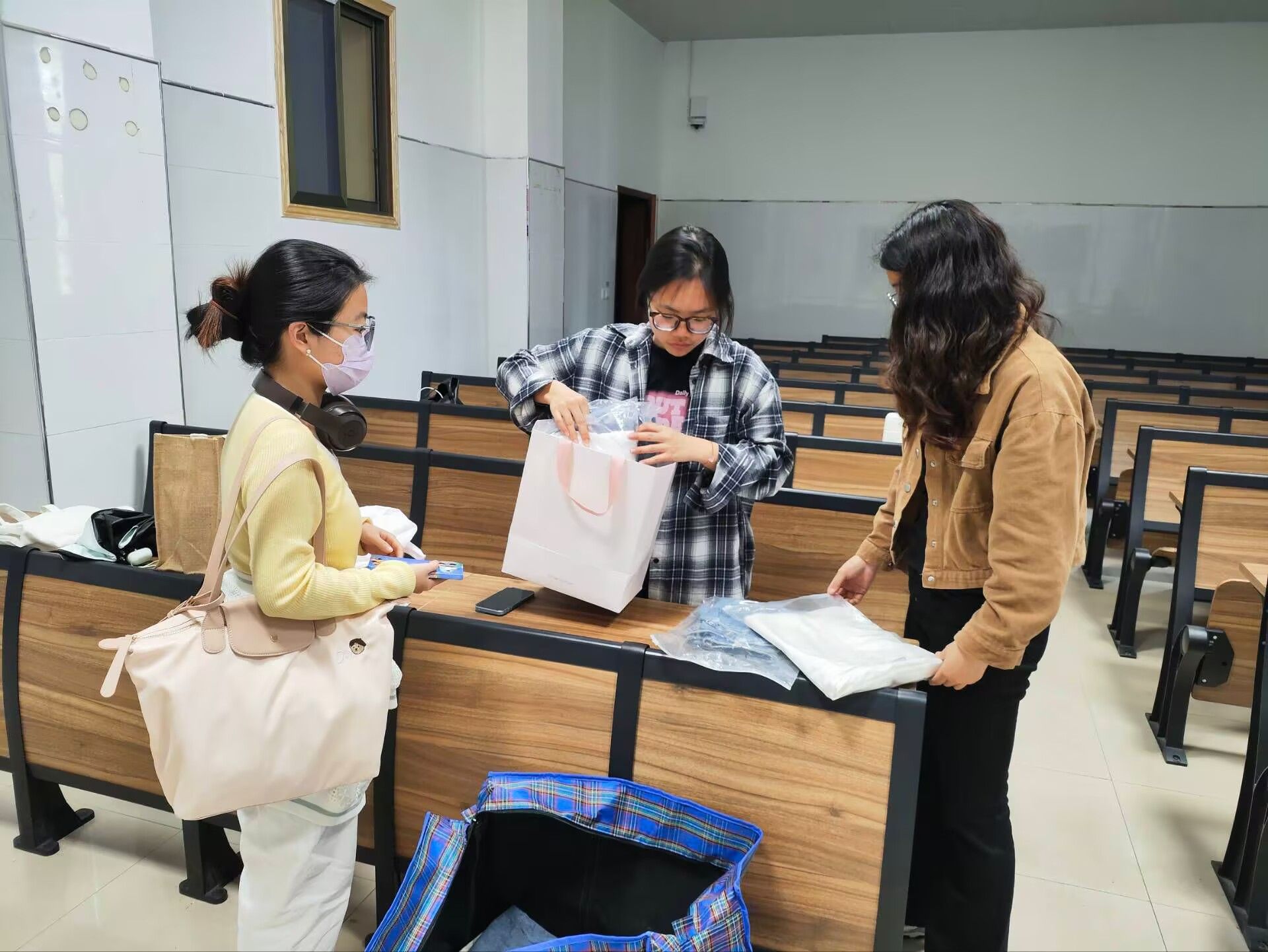 志愿者们分工协作,共同努力,将闲置的衣物整理整齐进行募捐,并将捐赠的衣物进行分类打包,为后续给养老院捐赠衣物的工作做了充分准备。