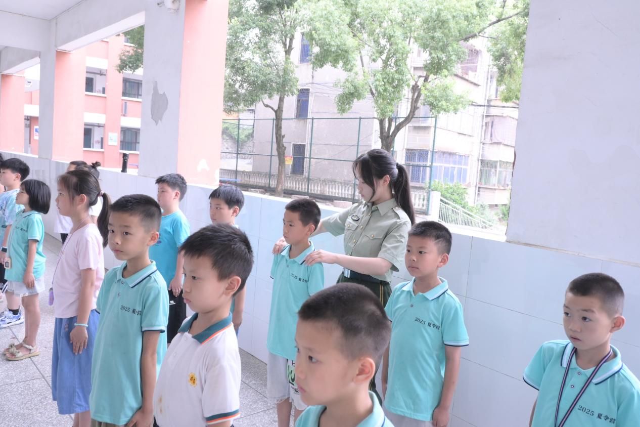彭晶晶结合队列示范、口令指导等教学方式,向学生们讲授了站军姿、齐步走等基础队列动作,讲解了军事训练中的纪律意识和集体协作的重要性,引导学生们在练习中体会“令行禁止”的军人作风和“团结一心”的团队精神。