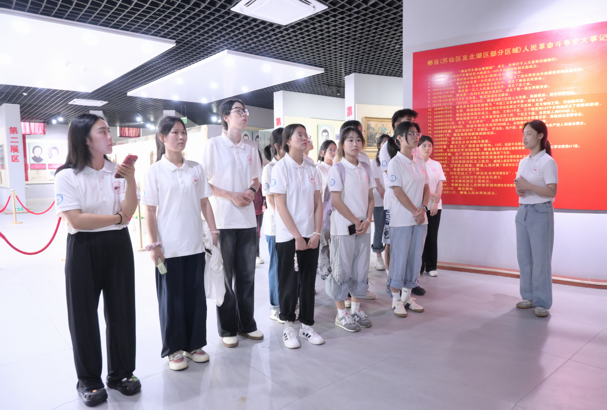实践团成员一同参观了苏仙区革命烈士纪念馆。刘佳为实践团成员讲解了苏仙区作为革命老区和湘南起义中心的历史。支教组各组员为成员们讲解了陈友才、黄静源等众多先烈的事迹。