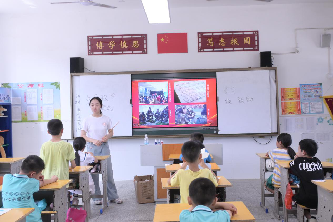 (通讯员 许海微 彭璟怡 曾婷)7月14日上午,我院ok138cn太阳集团“燃情盛夏”暑期社会实践团在良田学校开展“从军徽到队徽,做党的红孩子”红色论坛活动。支教组成员彭晶晶担任主讲人。