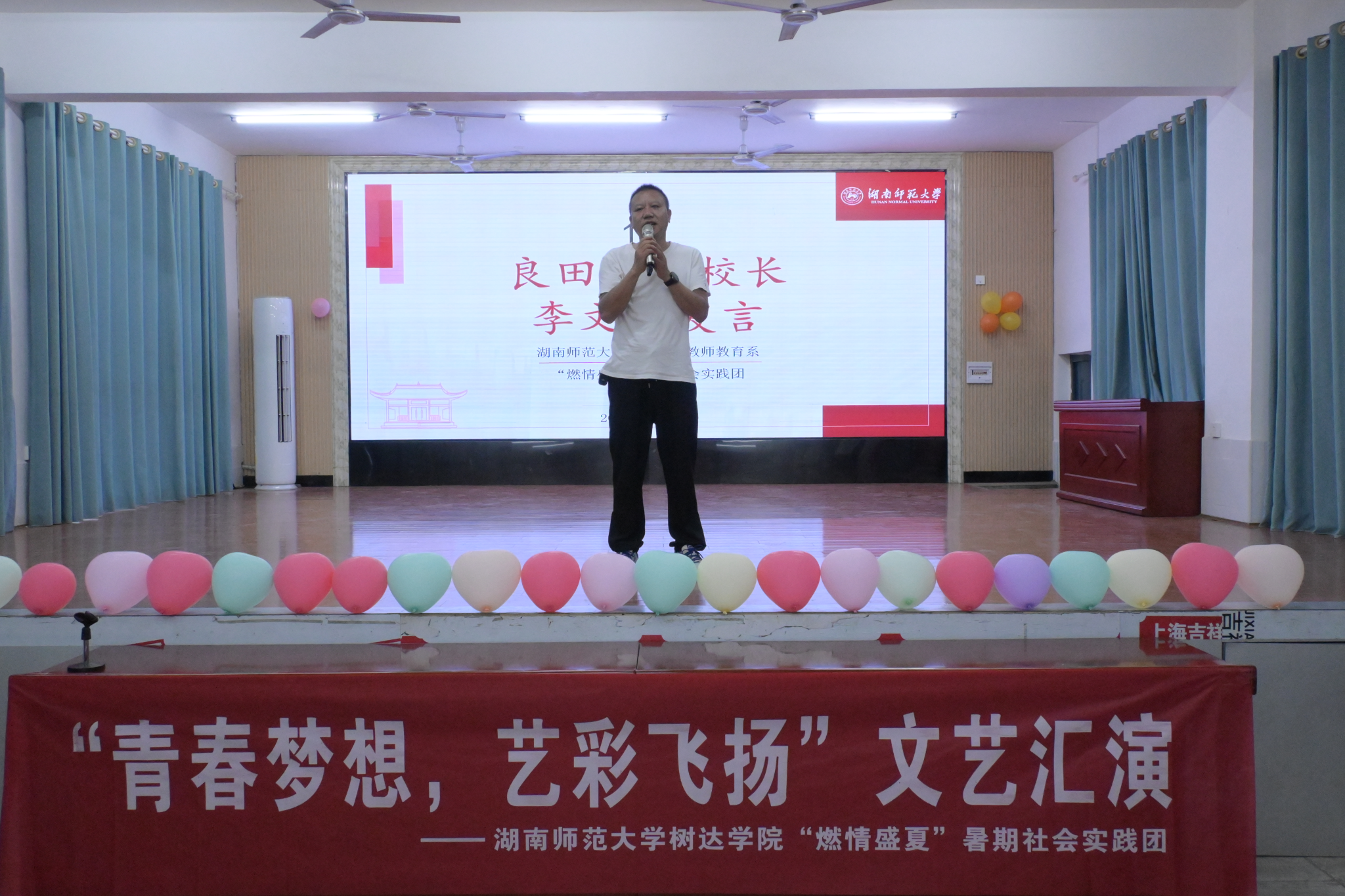 (通讯员 许海微 彭璟怡 陈琼芝)7月19日下午,我院ok138cn太阳集团“燃情盛夏,携手教途”暑期社会实践团在郴州市苏仙区良田镇良田学校举行文艺汇演暨成果大会。市派驻良田社区第一书记肖聃、良田学校党委书记李学文、良田学校校长李文兵、实践团指导老师刘佳出席活动。活动由良田学校学生段坤钰、杨钰旋主持。