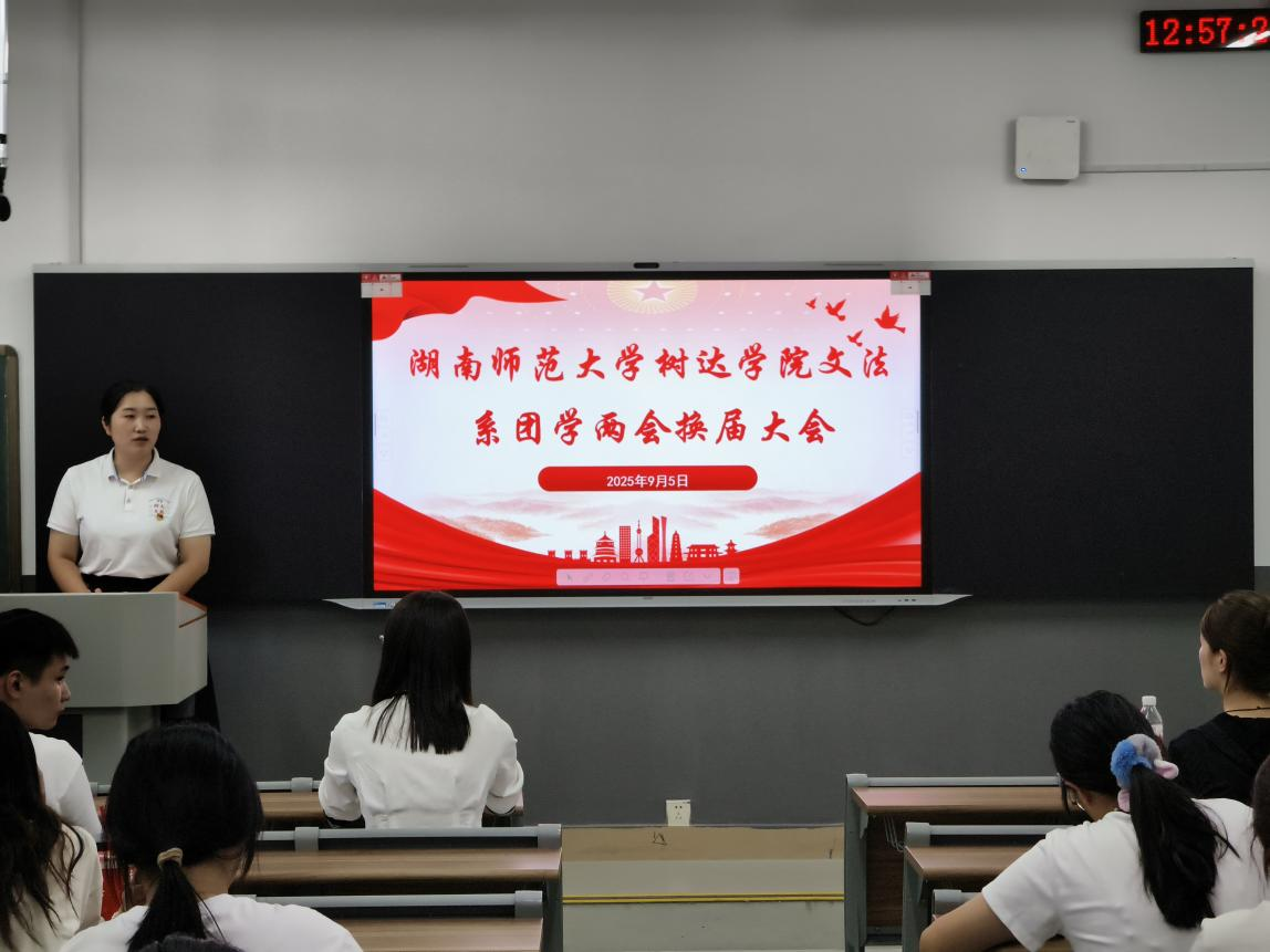 (通讯员 樊依冰 夏楷)9月6日中午,我院文法系团学两会在树达楼503教室召开换届大会。会议由文法系团总支学生会办公室主任李文畅主持。