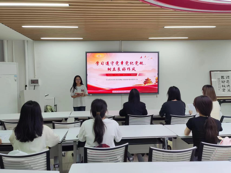(记者 周慧 熊贝贝 吴丹)4月15日晚,我院文法系学生第二党支部第21期发展对象在党员之家开展以“如何学习、遵守党章党规党纪,树立良好的作风”为主题的专题研讨会。会议由第21期发展对象谭思主持。