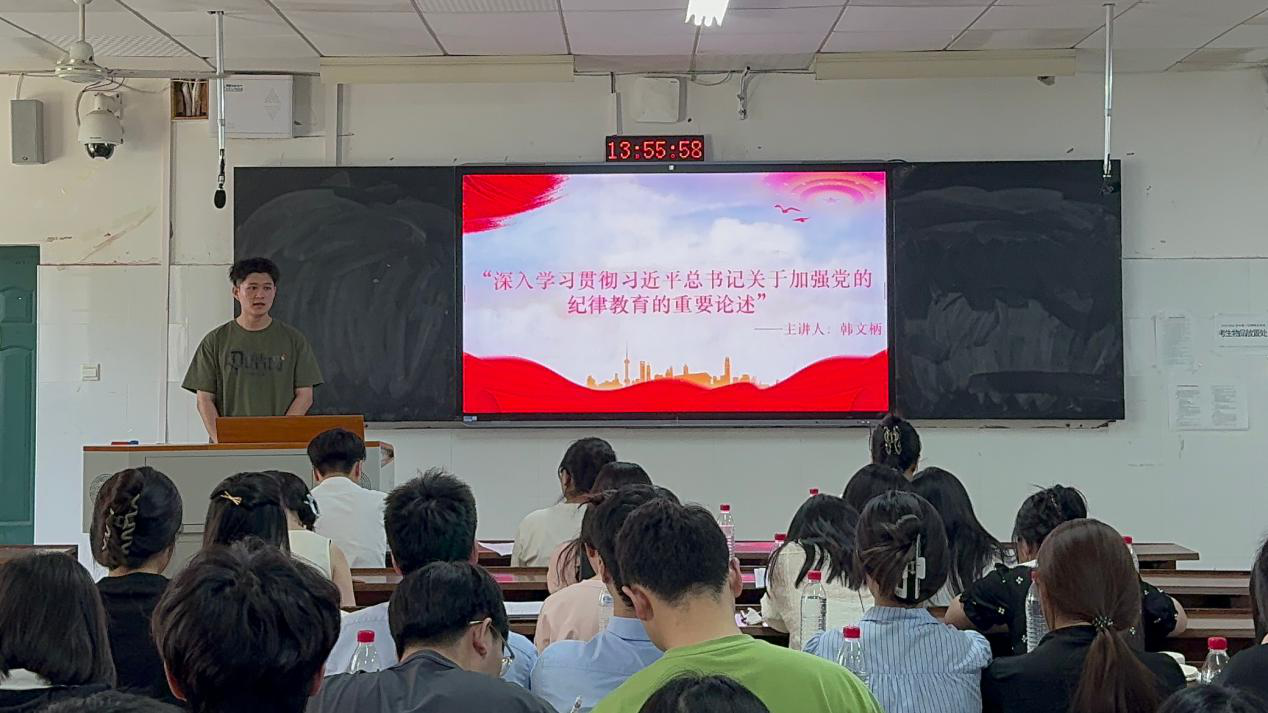 (记者 蔡雅婷 曾茜 文艳琳)5月17日中午,我院文法系学生第一党支部在树达楼106教室开展党纪学习教育主题党课。文法系学生第一党支部第一书记毛一出席党课。党课由文法系学生第一党支部书记韩文柄主持。