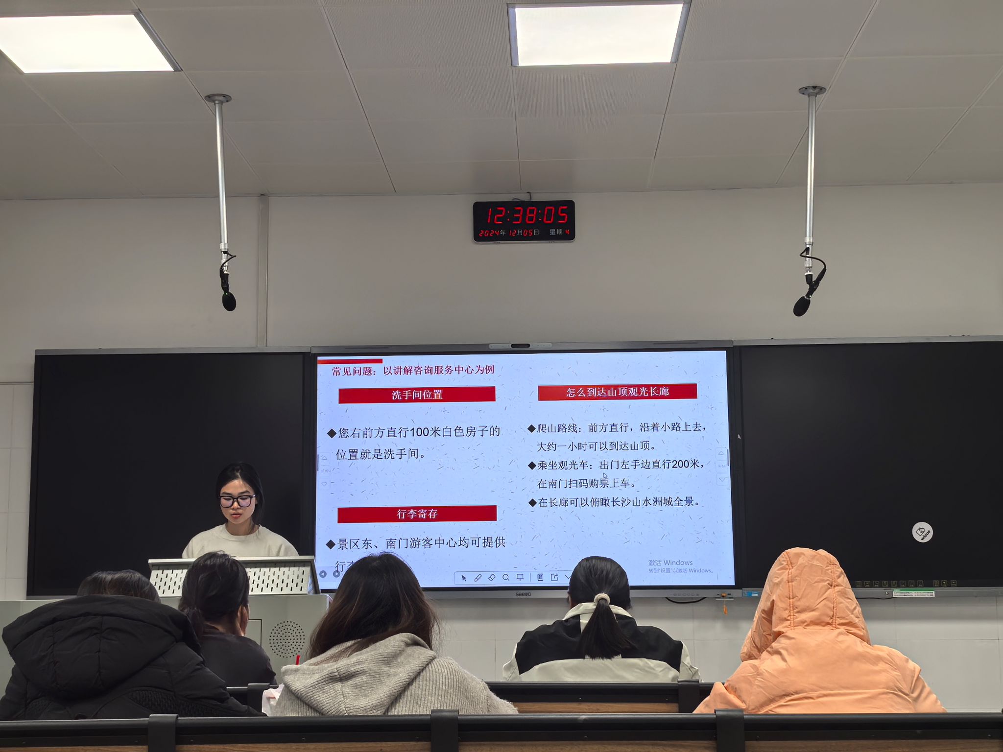 吴永佳从志愿服务时间、游客常见问题及回答话术、景区规定及劝导话术三个方面对志愿者们进行了详细培训。她强调,每位志愿者都应该清楚自己的服务时间及岗位,与游客交流时始终保持热情、友善和耐心,同时,要规范自身的行为举止,以身作则,树立良好的志愿者形象。